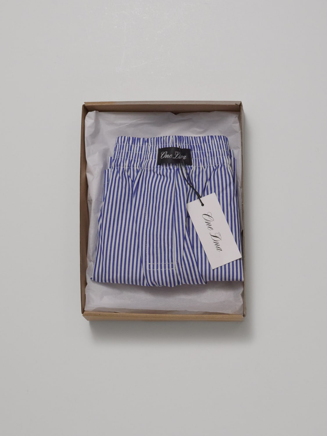 Blue and white striped boxer shorts with two side pockets and one in the back (yes, it fits your phone). Breathable fabric with off-body silhouette provides for all-day comfort. 100% Cotton.