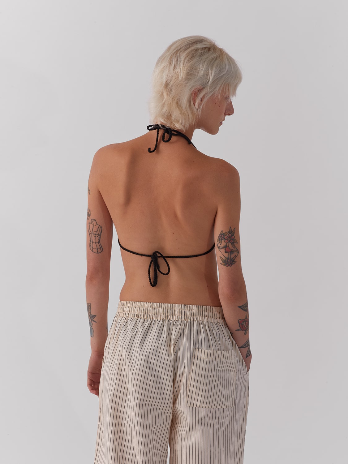- Self-tie halter strap and self-tie fastening at back