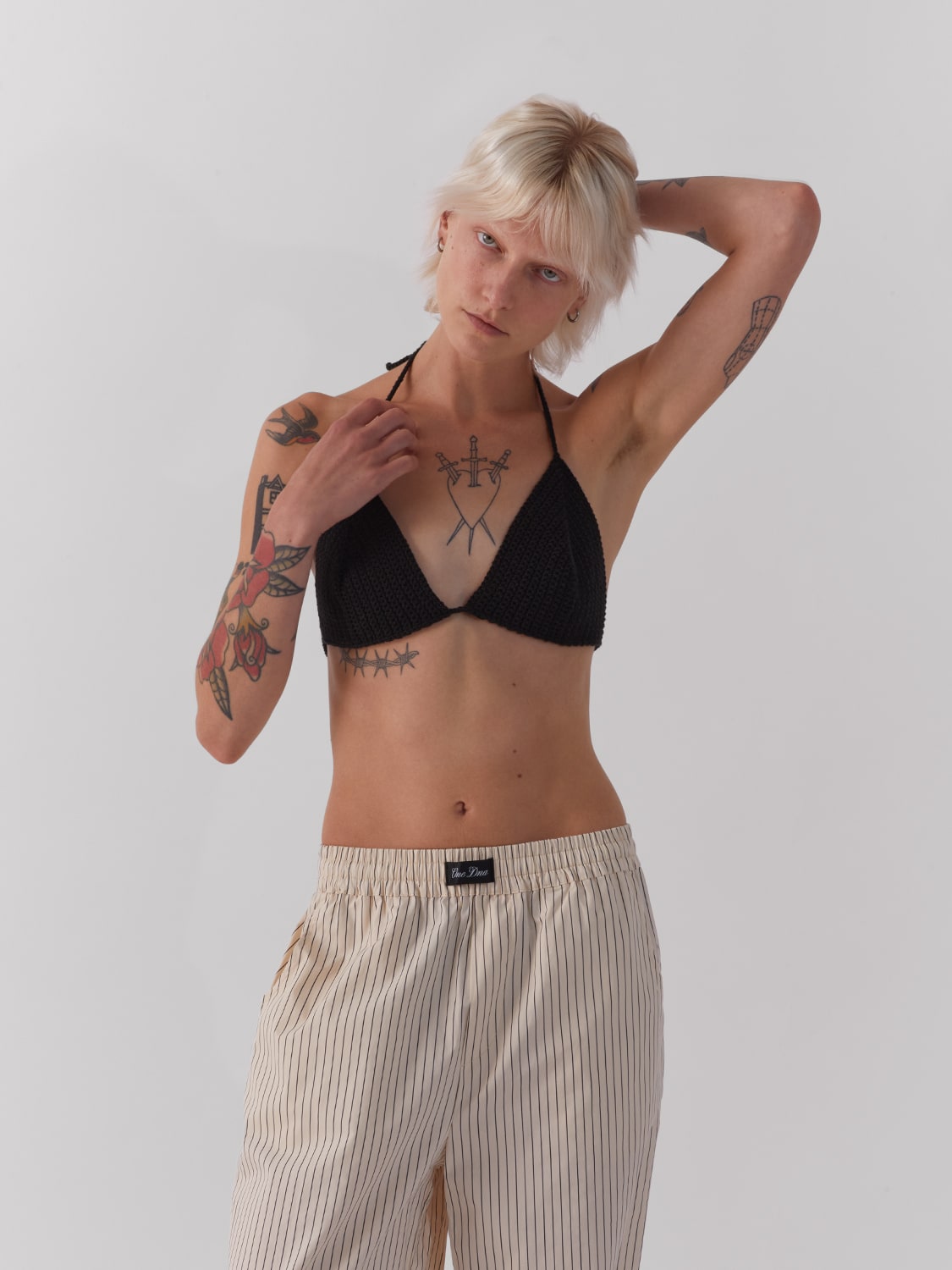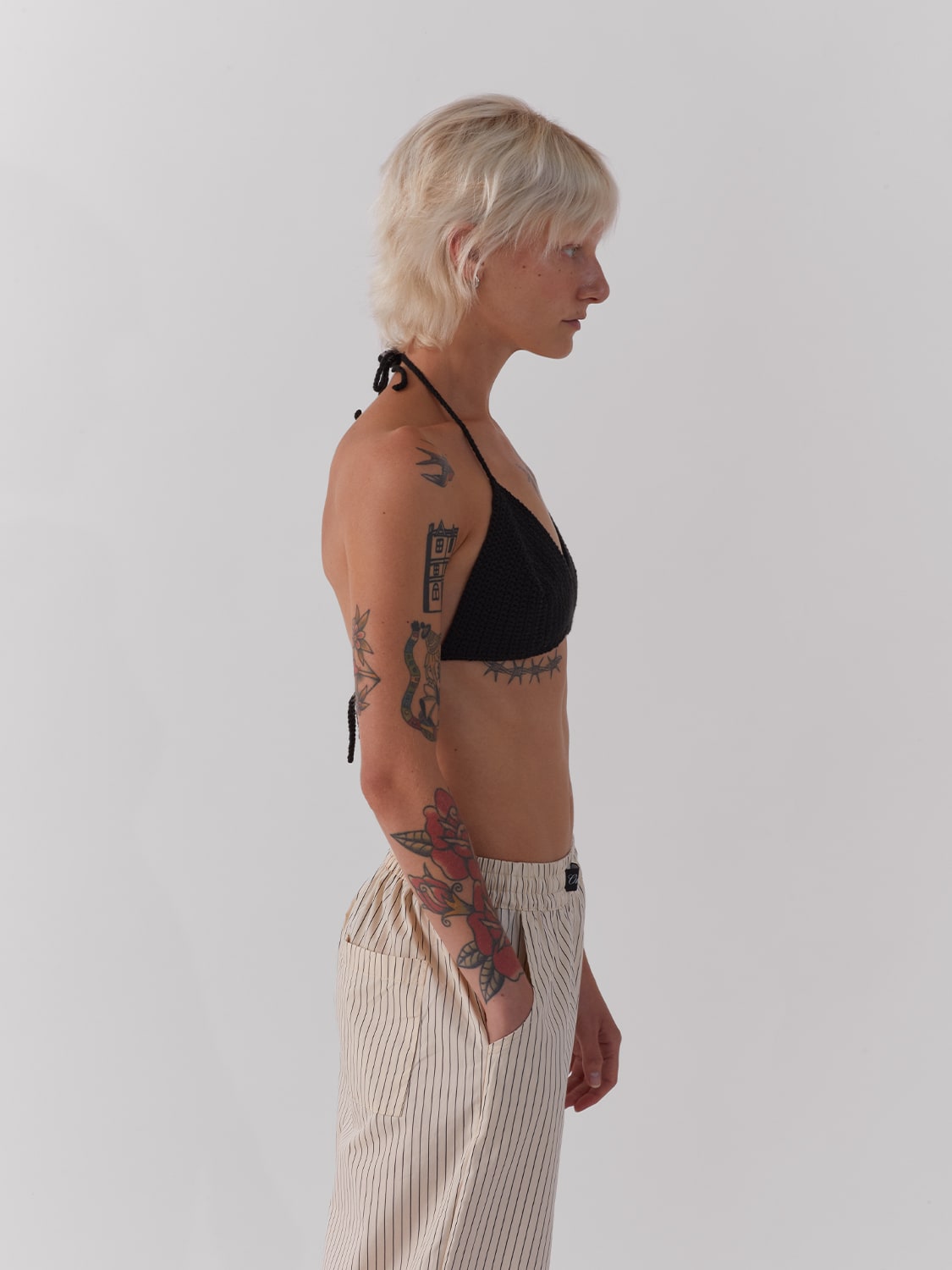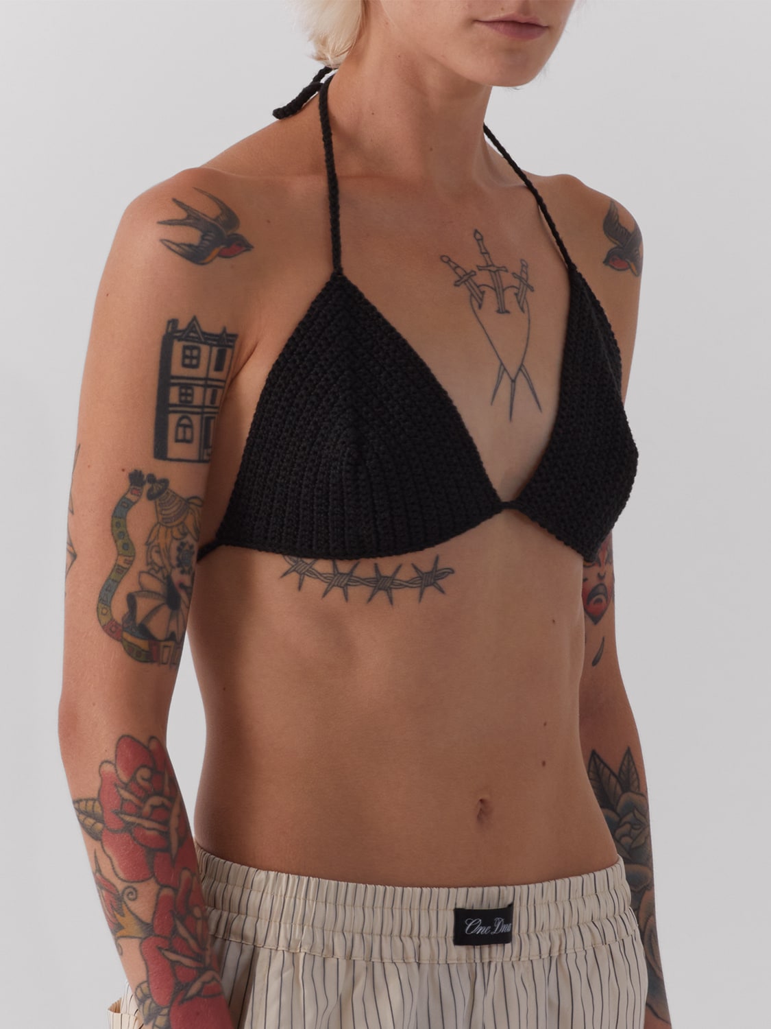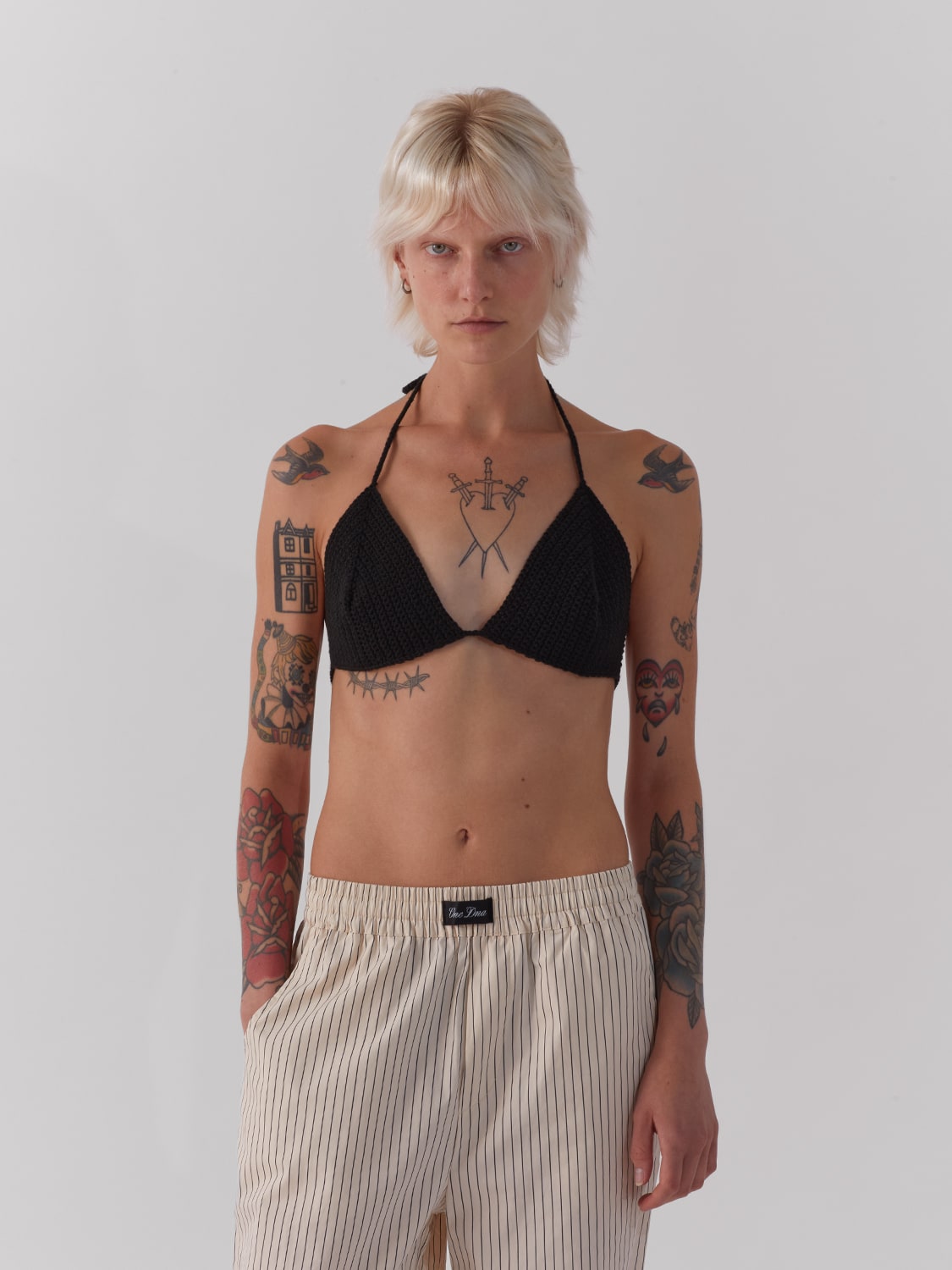 Crochet knit cotton bikini top in classic triangle shape. Handmade in small quantities by the ONE DNA team.