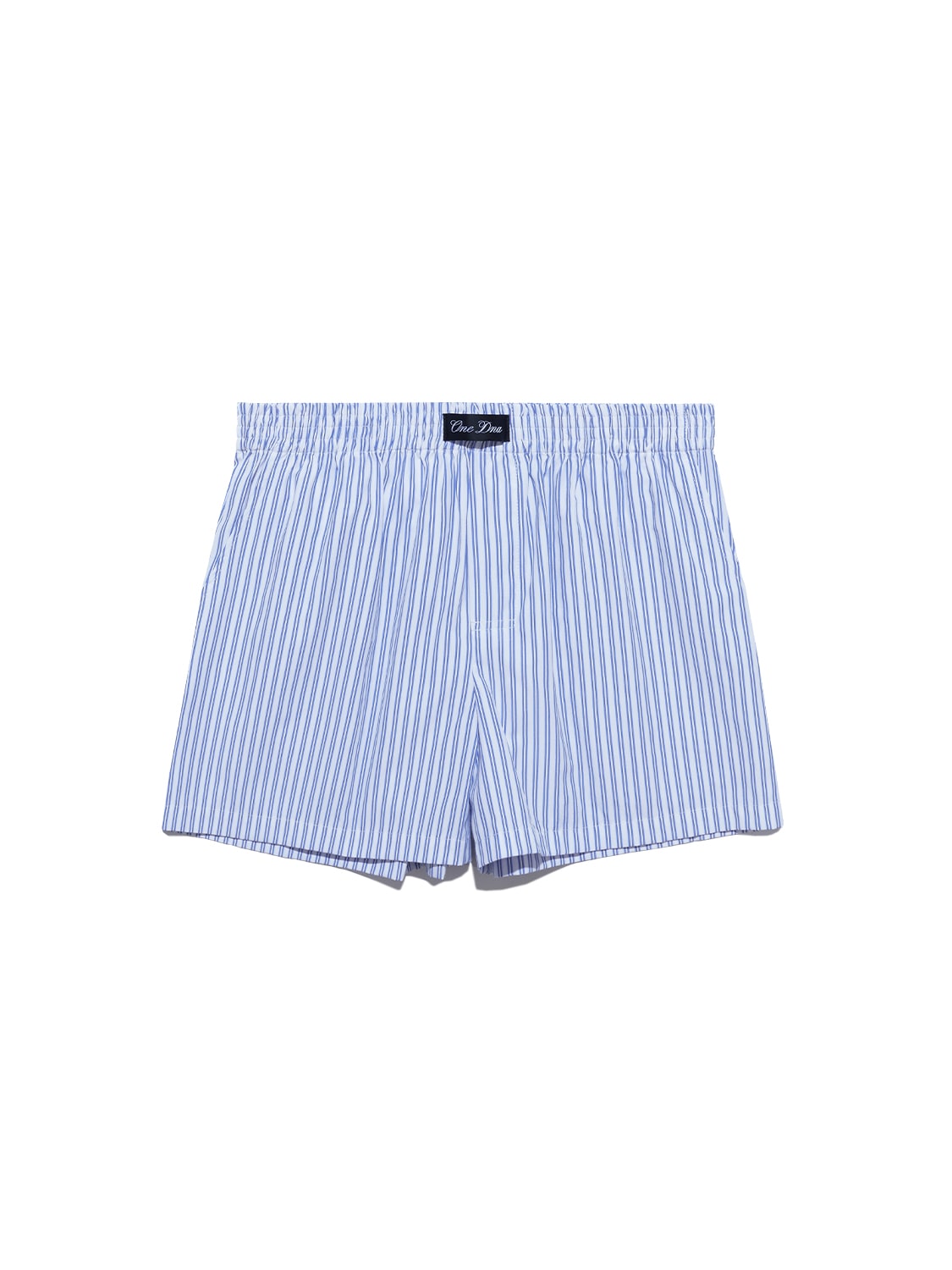 Boxer shorts in classic tailoring pinstripe. Two side pockets and one in the back (yes, it fits your phone). Elasticized waistband. For parties, vacation, around the house, gym/spa/resort. Minimal. Relaxed. 100% Polyester. Wrinkle resistant. Swim friendly. Quick drying. Wash tested.