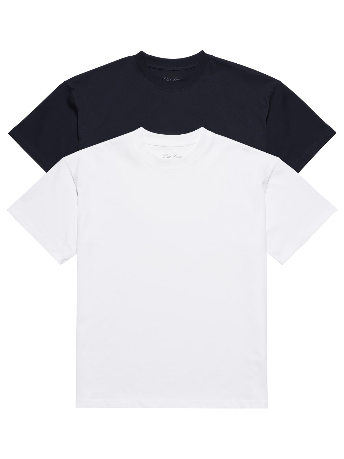 Boxy premium t-shirt. Blend of craftsmanship and design delivers an updated wardrobe staple. For every day wear, city strolling, poolside/beach/lake, date nights, dressy occasions, layering. Medium weight. Wide ribbed neck. 100% cotton. Wash tested. Pack includes 1 black, 1 white t-shirt.